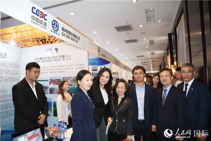 | 10月8日,沈敏娟(左三)大使在中企展位(左二為布拉根局長(zhǎng))。人民網(wǎng)記者 霍文攝 |
