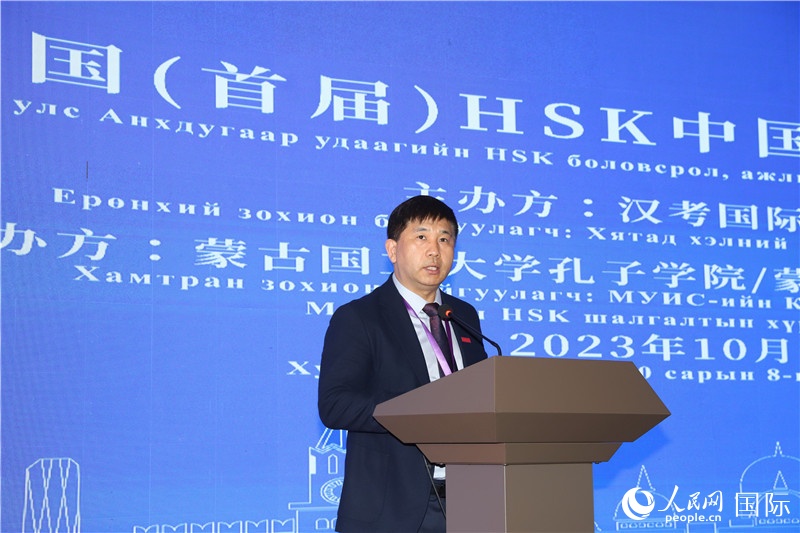 | 10月8日,巴特扎爾嘎拉副校長(zhǎng)致辭。人民網(wǎng)記者 霍文攝 |