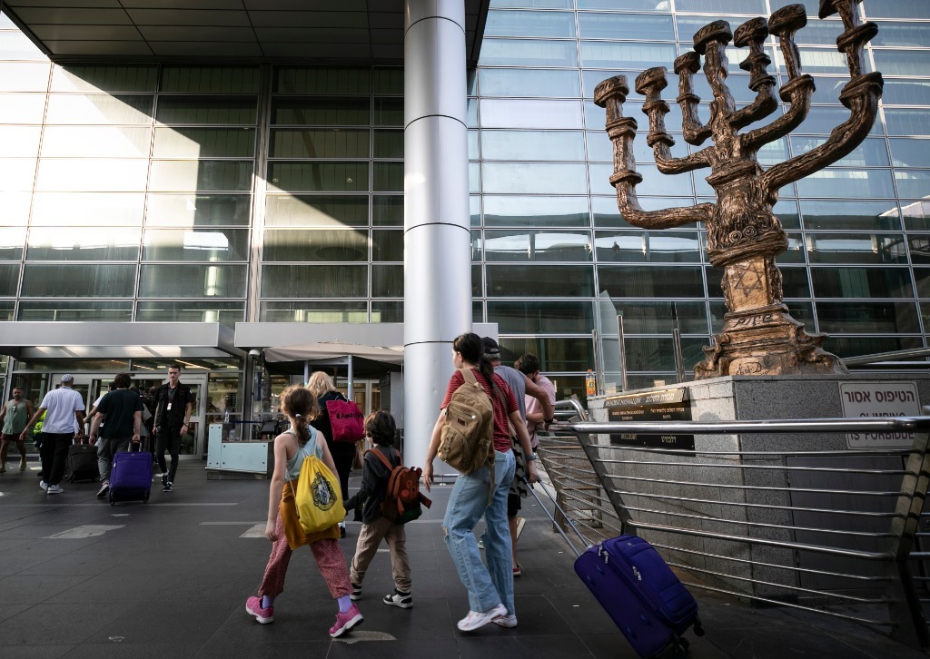 10月8日,旅客來到以色列特拉維夫附近的本-古里安國際機場準備乘機出行。(新華社記者陳君清攝)
