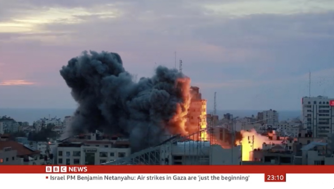 “我們現(xiàn)在正處于(加沙地帶)此前遭以色列軍機摧毀的一座大樓的廢墟上?!?