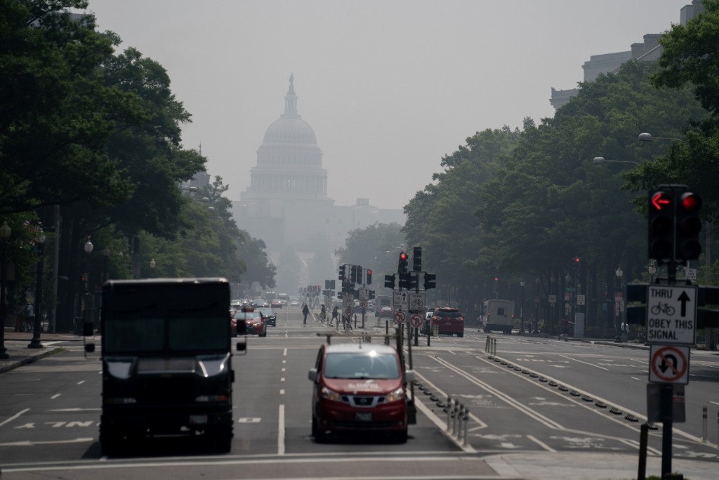 6月29日,在美國(guó)首都華盛頓,國(guó)會(huì)大廈籠罩在煙霧中。新華社記者劉杰攝