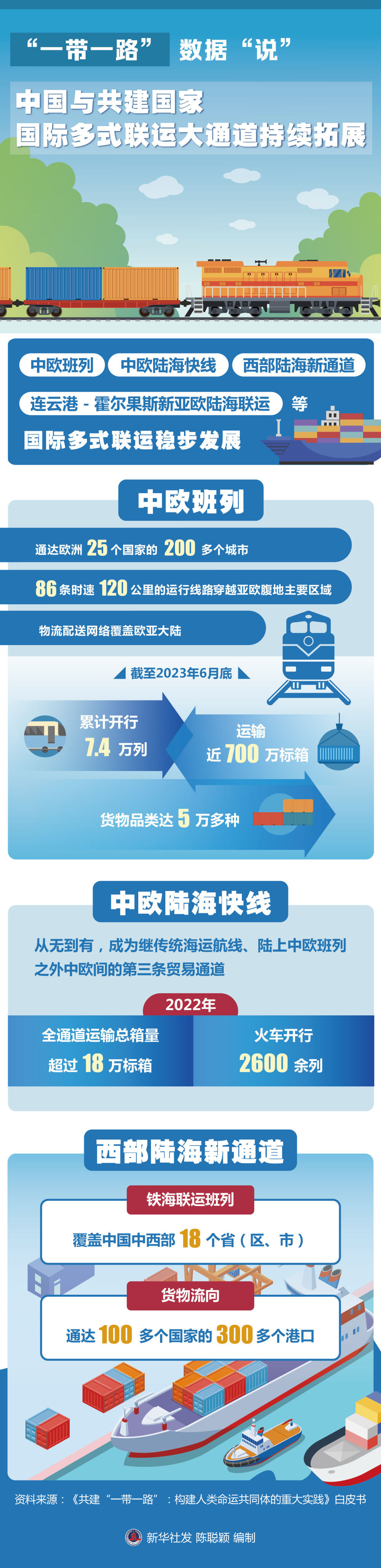國(guó)際多式聯(lián)運(yùn)大通道持續(xù)拓展。中歐班列、中歐陸??炀€、西部陸海新通道、連云港-霍爾果斯新亞歐陸海聯(lián)運(yùn)等國(guó)際多式聯(lián)運(yùn)穩(wěn)步發(fā)展。中歐班列通達(dá)歐洲25個(gè)國(guó)家的200多個(gè)城市,86條時(shí)速120公里的運(yùn)行線路穿越亞歐腹地主要區(qū)域,物流配送網(wǎng)絡(luò)覆蓋歐亞大陸;截至2023年6月底,中歐班列累計(jì)開行7.4萬列,運(yùn)輸近700萬標(biāo)箱,貨物品類達(dá)5萬多種,涉及汽車整車、機(jī)械設(shè)備、電子產(chǎn)品等53大門類,合計(jì)貨值超3000億美元。中歐陸??炀€從無到有,成為繼傳統(tǒng)海運(yùn)航線、陸上中歐班列之外中歐間的第三條貿(mào)易通道,2022年全通道運(yùn)輸總箱量超過18萬標(biāo)箱,火車開行2600余列。西部陸海新通道鐵海聯(lián)運(yùn)班列覆蓋中國(guó)中西部18個(gè)?。▍^(qū)、市),貨物流向通達(dá)100多個(gè)國(guó)家的300多個(gè)港口。