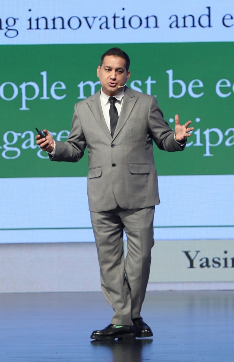 來自巴基斯坦的 “一帶一路”建設(shè)和中國事務(wù)專家、研究員、記者、戰(zhàn)略分析師亞西爾·馬蘇德發(fā)表演講。中國日報記者 鄒紅 攝