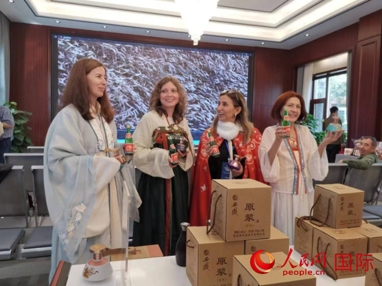 | 2023“一帶一路”媒體合作論壇歐亞主流媒體考察團(tuán)參觀陜西西鳳酒股份有限公司。人民網(wǎng)記者 楊倩攝 |