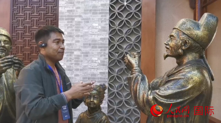 | 吉爾吉斯斯坦《自由之山報(bào)》總編輯納拉雷·阿桑巴耶夫參觀西鳳酒文化館。人民網(wǎng)記者 楊倩攝 |