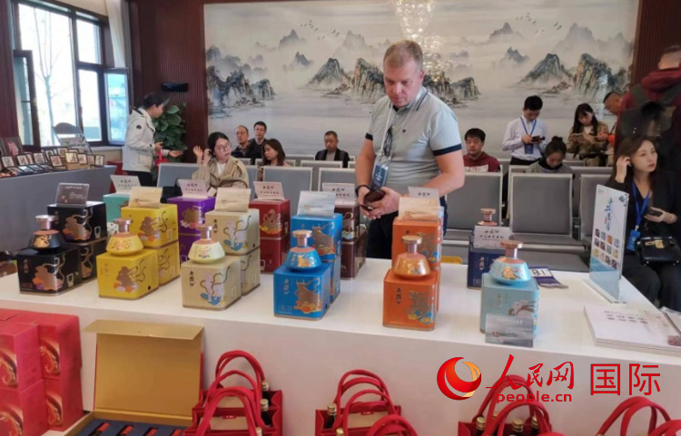 | 今日白俄羅斯出版集團(tuán)副社長兼副總編輯伊凡·西尼什金參觀西鳳酒產(chǎn)品。人民網(wǎng)記者 楊倩攝 |