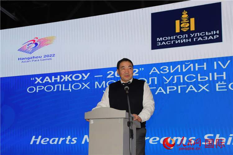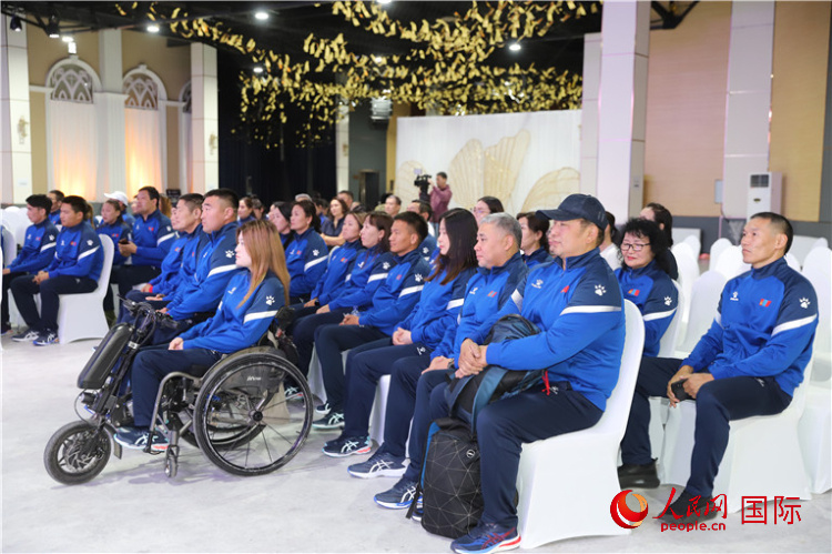 儀式上首先播放了杭州第4屆亞殘運(yùn)會宣傳片,宣讀了亞殘奧委會主席馬吉德的賀辭。巴特額爾登在致辭中感謝蒙古國運(yùn)動員和教練員的辛勤付出,預(yù)祝參賽運(yùn)動員取得好成績。尼瑪呼在致辭中希望代表團(tuán)成員團(tuán)結(jié)一致,賽出風(fēng)格,賽出水平,樹立蒙古國運(yùn)動員的良好形象,同時力爭獲得更多獎牌,為國增光。