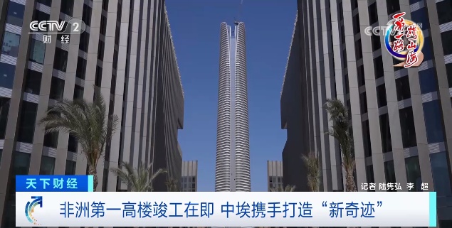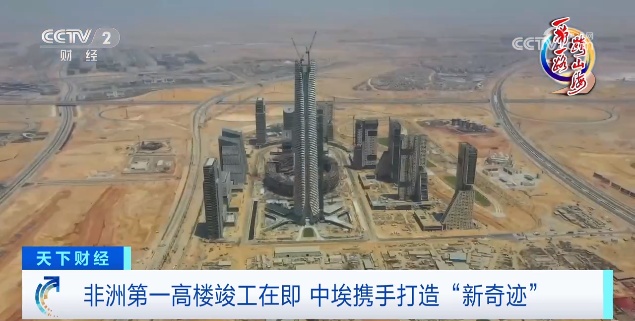 總臺記者 陸雋弘:這片已然拔地而起的現(xiàn)代化新城,就是在建中的埃及新行政首都中央商務(wù)區(qū)。其中最高大顯眼的這座大樓,便是高達385.8米的非洲第一高樓“標(biāo)志塔”。中央商務(wù)區(qū)項目的全部20棟建筑均已完成主體結(jié)構(gòu)及外裝幕墻的施工,整個項目正處于竣工前的最后沖刺階段。
