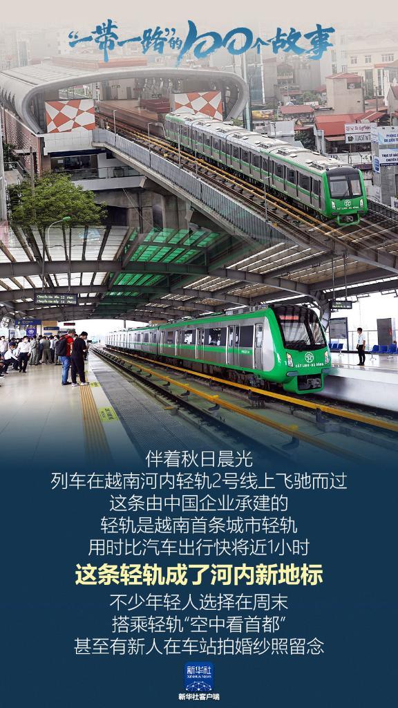 伴著秋日晨光,列車在越南河內(nèi)輕軌2號(hào)線上飛馳而過。這條由中國(guó)企業(yè)承建的輕軌是越南首條城市輕軌,用時(shí)比汽車出行快將近1小時(shí)。這條輕軌成了河內(nèi)新地標(biāo),不少年輕人選擇在周末搭乘輕軌“空中看首都”,甚至有新人在車站拍婚紗照留念。