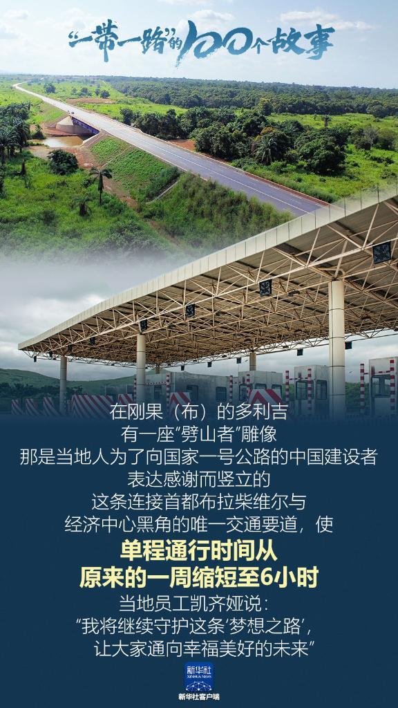 在剛果(布)的多利吉,有一座“劈山者”雕像,那是當(dāng)?shù)厝藶榱讼驀?guó)家一號(hào)公路的中國(guó)建設(shè)者表達(dá)感謝而豎立的。這條連接首都布拉柴維爾與經(jīng)濟(jì)中心黑角的唯一交通要道,使單程通行時(shí)間從原來(lái)的一周縮短至6小時(shí)。當(dāng)?shù)貑T工凱齊婭說(shuō):“我將繼續(xù)守護(hù)這條‘夢(mèng)想之路’,讓大家通向幸福美好的未來(lái)?!保ㄓ浾撸菏窂?/p>
