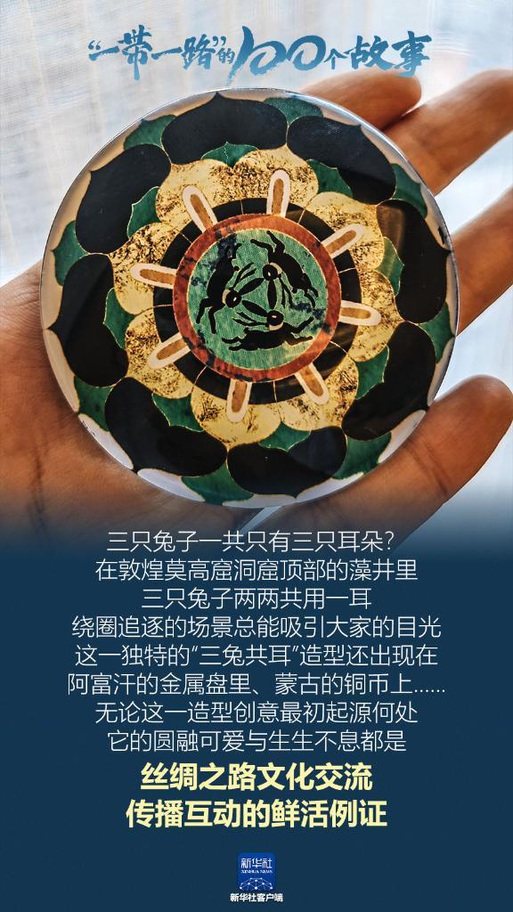 三只兔子一共只有三只耳朵?在敦煌莫高窟洞窟頂部的藻井里,三只兔子兩兩共用一耳、繞圈追逐的場(chǎng)景總能吸引大家的目光。這一獨(dú)特的“三兔共耳”造型還出現(xiàn)在阿富汗的金屬盤里、蒙古的銅幣上......無論這一造型創(chuàng)意最初起源何處,它的圓融可愛與生生不息都是絲綢之路文化交流、傳播互動(dòng)的鮮活例證。(記者:吳丹妮)