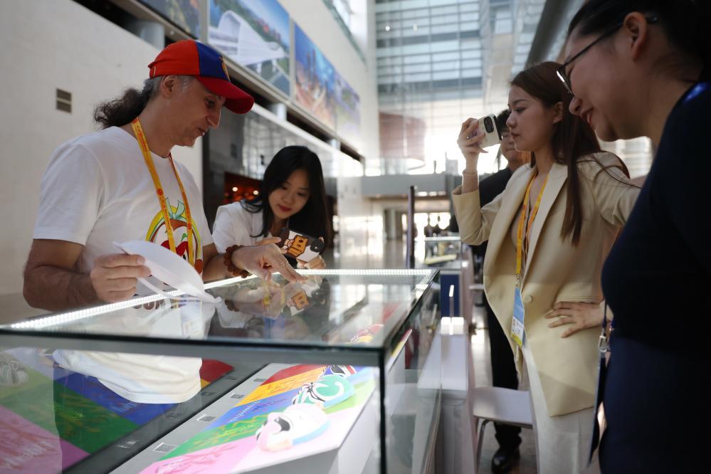 在論壇新聞中心科技文化互動(dòng)展示區(qū),哈薩克斯坦BAQ通訊社記者古爾然·拉曼庫(kù)洛娃饒有興致地體驗(yàn)著手繪彩塑京劇臉譜。在這里,除了彩塑京劇臉譜,還有木版水印、景泰藍(lán)制作等“非遺”體驗(yàn)項(xiàng)目,外籍記者可近距離感受中國(guó)傳統(tǒng)文化的魅力。