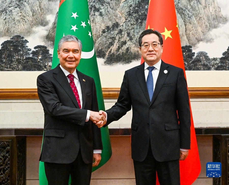 10月18日,中共中央政治局常委、國務(wù)院副總理丁薛祥在北京會見土庫曼斯坦民族領(lǐng)袖、人民委員會主席別爾德穆哈梅多夫。新華社記者 饒愛民 攝