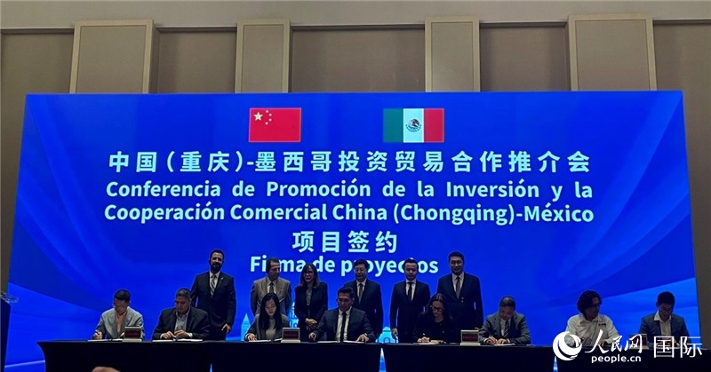 | 圖為中國(重慶)—墨西哥投資貿(mào)易合作推介會項目簽約現(xiàn)場。人民網(wǎng)記者 彭敏攝 |