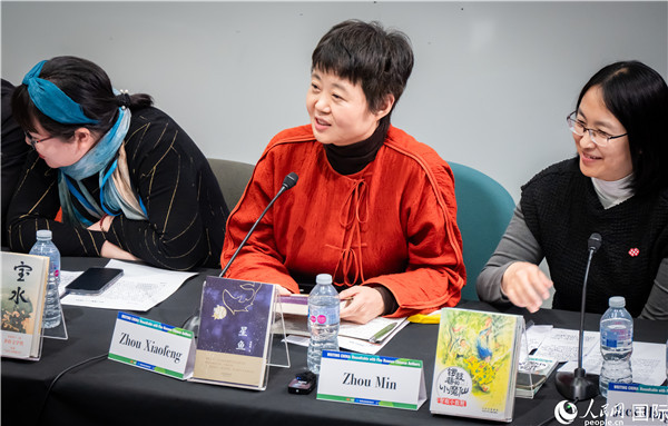 作家喬葉、周曉楓、周敏重點(diǎn)介紹了當(dāng)下中國(guó)的城鄉(xiāng)關(guān)系和兒童文學(xué)的創(chuàng)作。人民網(wǎng) 郭錦標(biāo)攝