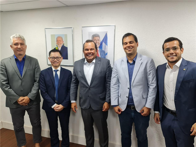 巴伊亞州副州長杰拉爾多·儒尼奧爾(中)與中國—巴伊亞州礦業(yè)委員會主要成員合影。巴西巴伊亞州“中國—巴伊亞州礦業(yè)委員會”供圖