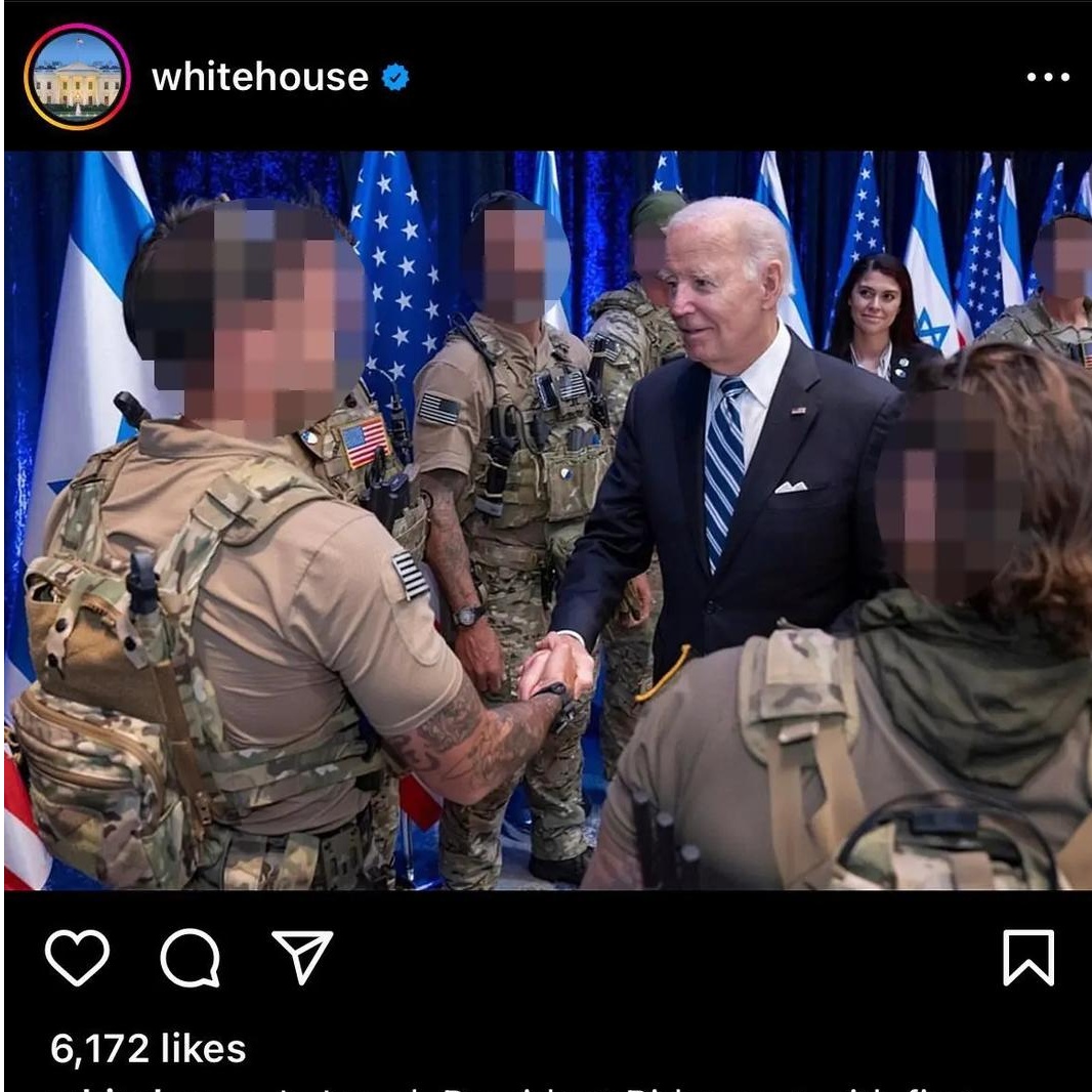 據(jù)報(bào)道,此前一支由美國陸軍精英反恐部隊(duì)組成的小組正在以色列“就人質(zhì)問題提供咨詢”。上周,在美國總統(tǒng)拜登訪問以色列參加“戰(zhàn)爭規(guī)劃會議”期間會見了一些美軍部隊(duì)成員。隨后,白宮在社交媒體賬戶上發(fā)布了一張拜登與士兵握手的照片,意外暴露了另外三名“三角洲”特種突擊隊(duì)成員的面孔。一個(gè)小時(shí)后,白宮刪除了這條帖子并就此事道歉。