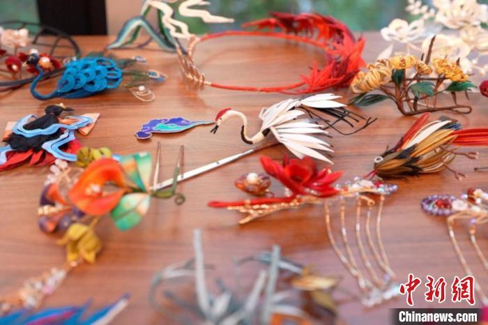 圖為活動展示的部分中國傳統(tǒng)發(fā)簪配飾。漢文化藝術(shù)交流中心供圖