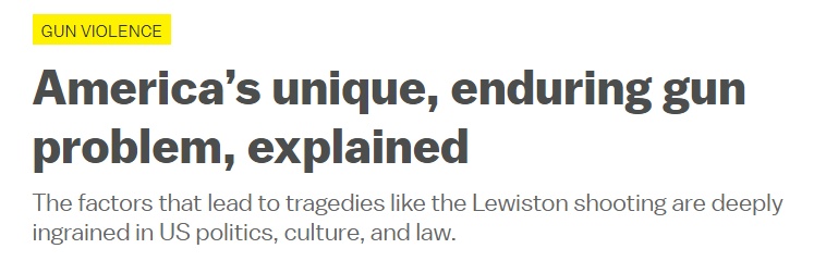 美國(guó)VOX新聞網(wǎng)26日刊文稱,導(dǎo)致劉易斯頓槍擊事件這樣的悲劇發(fā)生的因素在美國(guó)的政治、文化、法律中根深蒂固。槍支暴力是美國(guó)獨(dú)有的,但不應(yīng)變得正常化。
