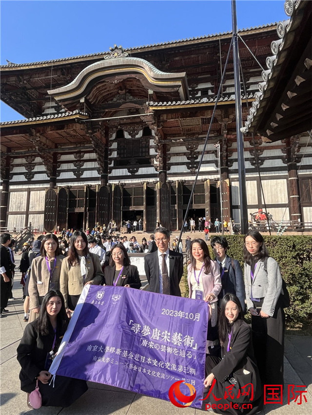 | 第三期“尋夢(mèng)唐宋藝術(shù)”赴日文化交流團(tuán)師生在東大寺合影。人民網(wǎng)記者 朱玥穎攝 |