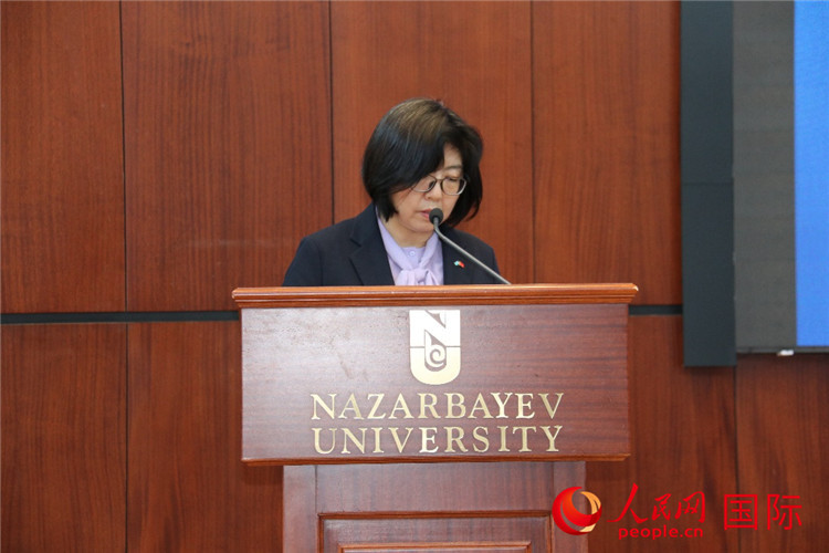 | 中國駐哈薩克斯坦大使館臨時代辦邢芳芳致辭。人民網(wǎng)記者李強攝 |