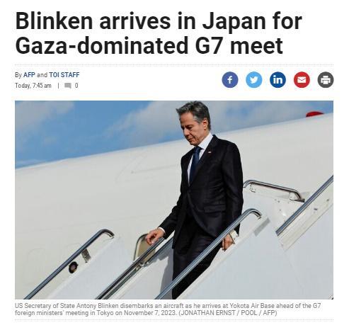 中新網(wǎng)11月7日電 據(jù)《以色列時報》報道,當(dāng)?shù)貢r間7日,美國國務(wù)卿布林肯已抵達(dá)日本,將在東京參加七國集團(G7)外長會議。