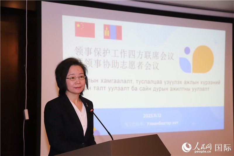 人民網(wǎng)烏蘭巴托11月13日電 (記者霍文)11月12日,中國(guó)駐蒙古使館與蒙古國(guó)中華總商會(huì)聯(lián)合舉辦2023年領(lǐng)事保護(hù)工作四方聯(lián)席會(huì)議和領(lǐng)事協(xié)助志愿者會(huì)議。中國(guó)駐蒙古國(guó)特命全權(quán)大使沈敏娟及駐蒙古使館、駐扎門烏德總領(lǐng)館,中華總商會(huì)、華僑協(xié)會(huì)、中資企業(yè)及留學(xué)生代表,領(lǐng)事協(xié)助志愿者以及蒙古警察總局、移民局官員等四方共百余人與會(huì)。