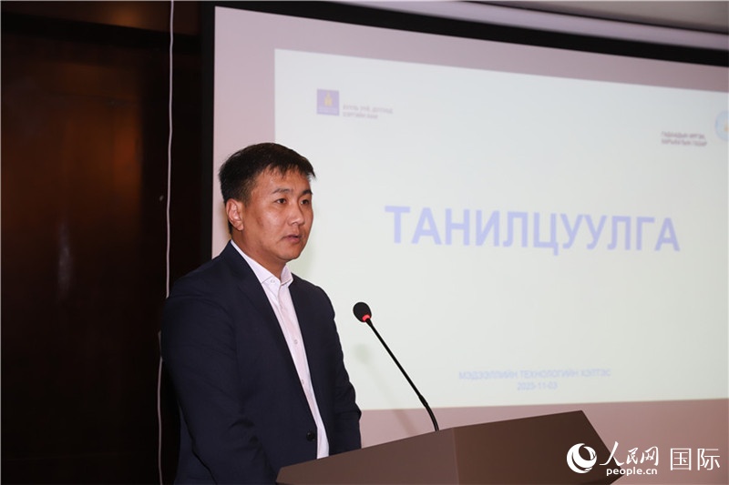 | 11月12日,蒙古國(guó)移民局科信處處長(zhǎng)鋼照日格介紹相關(guān)政策法規(guī)。人民網(wǎng)記者 霍文攝 |