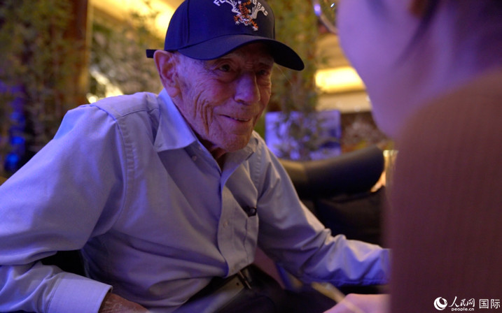 飛虎隊(duì)老兵哈里·莫耶接受人民網(wǎng)專訪。 人民網(wǎng) 張文捷攝