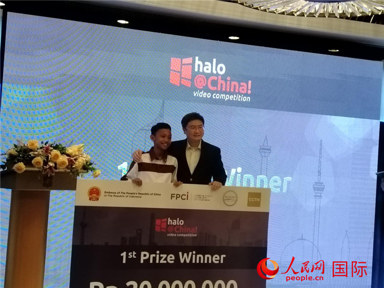 人民網(wǎng)雅加達(dá)11月15日電 (記者李培松)由中國駐印尼大使館、印尼外交政策協(xié)會、中國公共外交協(xié)會和中國國際電視臺共同主辦的第四屆“你好,中國!”短視頻大賽頒獎儀式14日晚在印尼首都雅加達(dá)舉行。中國駐印尼大使館公使周侃、印尼外交政策協(xié)會高級研究員索馬迪大使、中國公共外交協(xié)會副會長胡正躍、中國外交部前副部長孔鉉佑等中印尼嘉賓及大賽獲獎?wù)叱鱿?。本屆大賽的主題是“共建未來—紀(jì)念中印尼建立全面戰(zhàn)略伙伴關(guān)系10周年和‘一帶一路’倡議10周年”。