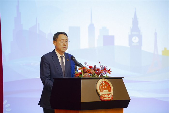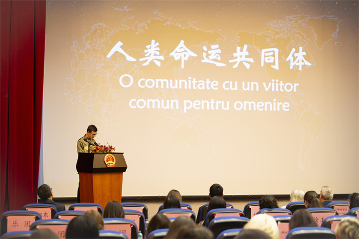 | 中國(guó)駐羅馬尼亞大使韓春霖致辭。布加勒斯特中國(guó)文化中心供圖 |