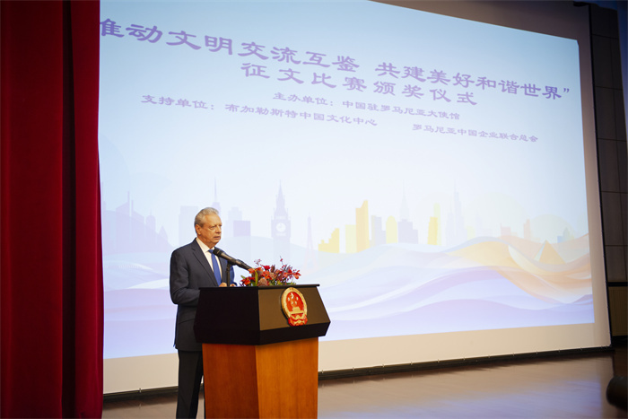 人民網(wǎng)華沙11月18日電 (記者李增偉)“推動(dòng)文明交流互鑒 共建美好和諧世界”征文比賽頒獎(jiǎng)儀式17日在羅馬尼亞首都布加勒斯特舉行。此次活動(dòng)由中國(guó)駐羅馬尼亞大使館主辦,布加勒斯特中國(guó)文化中心和羅馬尼亞中國(guó)企業(yè)聯(lián)合總會(huì)支持。中國(guó)駐羅馬尼亞大使韓春霖、羅馬尼亞前駐華大使伊斯蒂喬亞、布加勒斯特中國(guó)文化中心、羅馬尼亞中國(guó)企業(yè)聯(lián)合總會(huì)、在羅孔子學(xué)院中外方院長(zhǎng)、漢學(xué)家代表,以及參賽高校學(xué)生、家長(zhǎng)等150多人出席。
