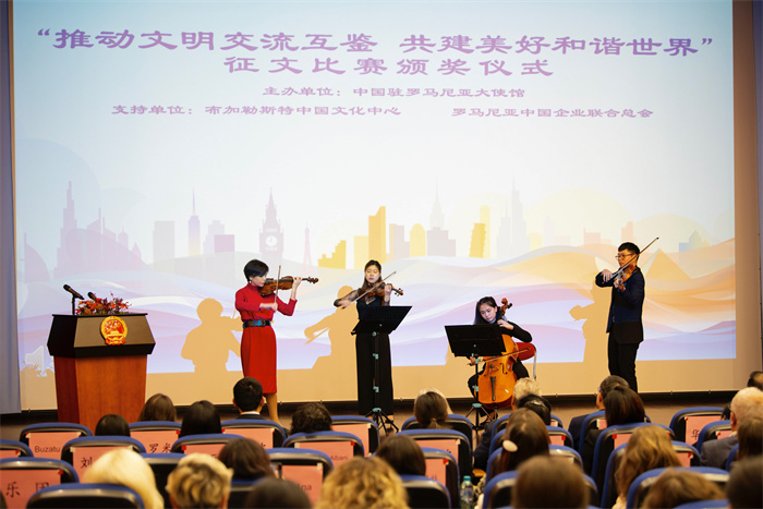 | 香港弦樂(lè)團(tuán)音樂(lè)家在頒獎(jiǎng)儀式上的精彩演出。布加勒斯特中國(guó)文化中心供圖 |