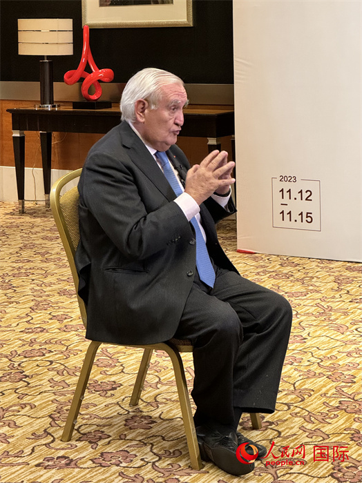 法國前總理、法國展望與創(chuàng)新基金會主席讓-皮埃爾·拉法蘭接受人民網(wǎng)的采訪。國際在線供圖