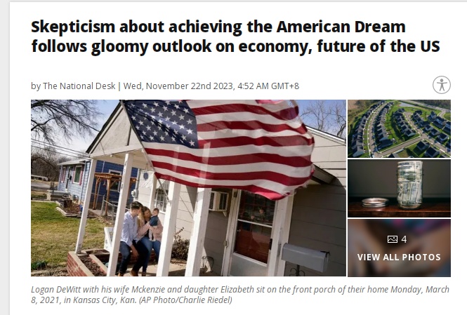 美國(guó)研究機(jī)構(gòu)archbridge institute的一份年度報(bào)告也觀察到,人們對(duì) “美國(guó)夢(mèng) ”定義的優(yōu)先次序發(fā)生了變化。最受歡迎的兩個(gè)回答是 “自由選擇生活方式 ”和 “良好的家庭生活”。archbridge institute的調(diào)查還注意到,自2020年開始調(diào)查以來,首次有近四分之一的受訪者認(rèn)為“美國(guó)夢(mèng)”遙不可及。