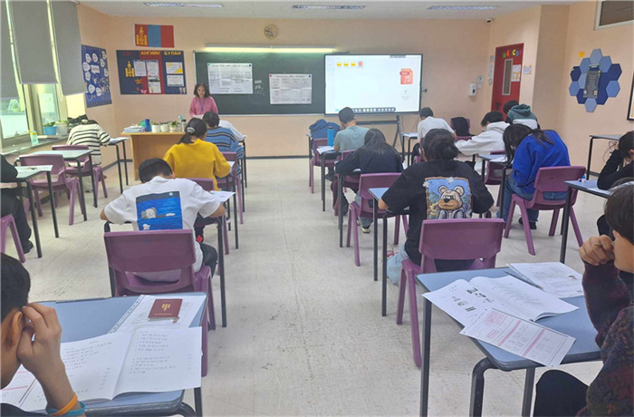 | 12月3日HSK考場(chǎng)。蒙古國立教育大學(xué)孔子學(xué)院供圖 |
