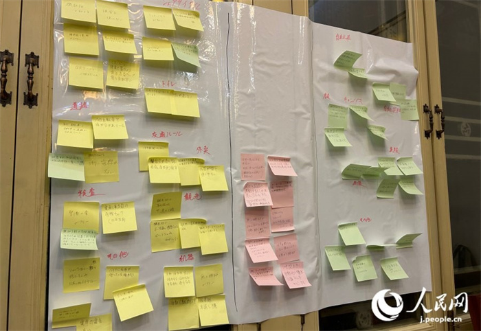 | 各組學生將關注的話題寫在便利貼上,由此展開探討。人民網 玄番登史江攝 |