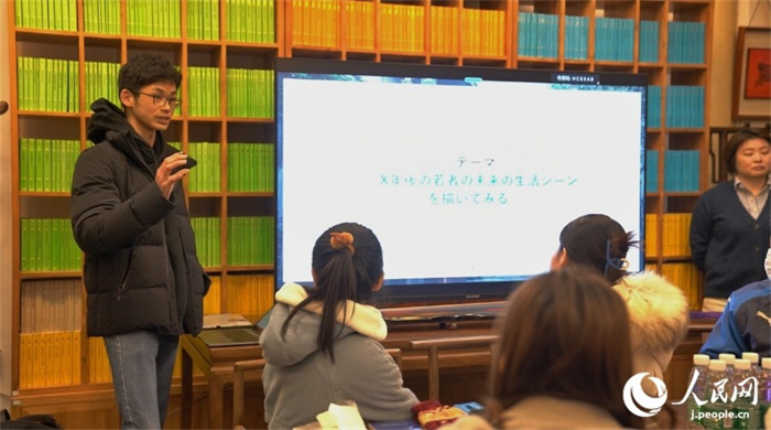 | 學生組織者之一的豐嶋駿介正在對當天的研討會流程進行說明。人民網記者 袁蒙攝 |