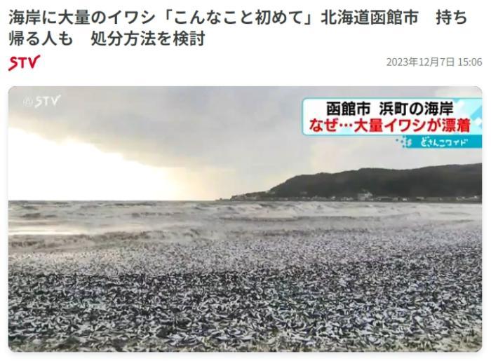 有當(dāng)?shù)鼐用駥θ毡倦娨暸_表示,第一次見到這么多沙丁魚被沖上岸,還有居民表示要把魚撿回去吃。