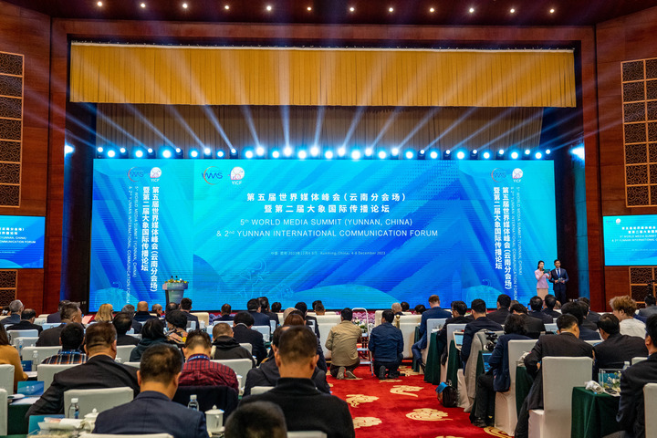 12月5日,云南昆明第五屆世界媒體峰會(云南分會場)暨第二屆大象國際傳播論壇開幕式現(xiàn)場。新華社記者 胡超 攝