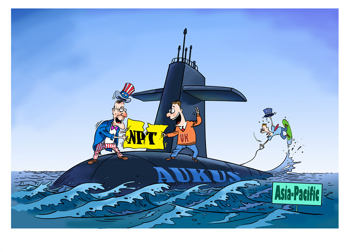 美英澳三國核潛艇合作涉及核武器國家向無核武器國家轉(zhuǎn)讓大量武器級高濃鈾,構(gòu)成嚴(yán)重核擴(kuò)散風(fēng)險。這與《不擴(kuò)散核武器條約》的目的和宗旨相悖,是赤裸裸的雙重標(biāo)準(zhǔn)。