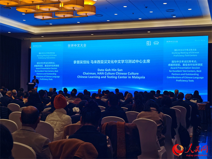 人民網(wǎng)北京12月8日電 (楊春燕)12月7日,世界中文大會國際中文水平考試考點會在北京國家會議中心成功舉辦,會上表彰了48個HSK優(yōu)秀考點,其中包括馬來西亞漢文化中文學(xué)習(xí)測試中心。馬來西亞漢文化中心主席吳恒燦會后接受人民網(wǎng)采訪時表示,學(xué)習(xí)中文在馬來西亞非華裔群體已蔚然成風(fēng)。