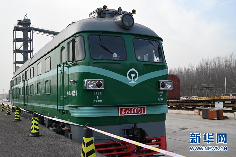 12月8日,停在馬坊站的中歐班列火車頭。新華網(wǎng)發(fā) 余申芳攝
