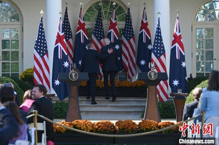 2023年10月25日,華盛頓白宮,美國總統(tǒng)拜登與澳大利亞總理阿爾巴尼斯的背影。中新社記者 陳孟統(tǒng) 攝