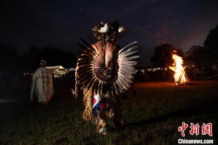2023年7月29日,紐約皇后區(qū),參加“帕瓦”活動印第安人的背影。中新社記者 廖攀 攝