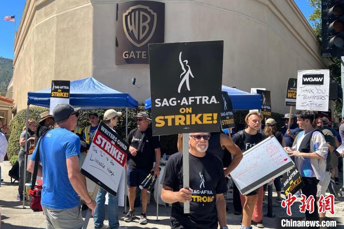 2023年7月14日,加州洛杉磯,好萊塢罷工者的背影。中新社記者 張朔 攝