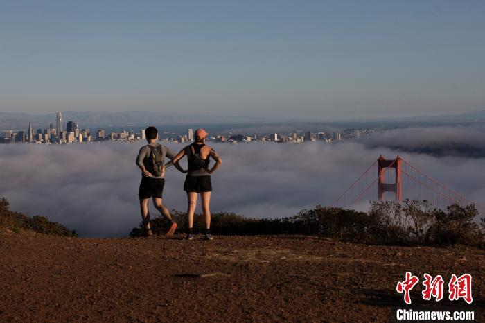 2023年10月17日,加州舊金山,眺望金門大橋的背影。中新社記者 劉關(guān)關(guān) 攝