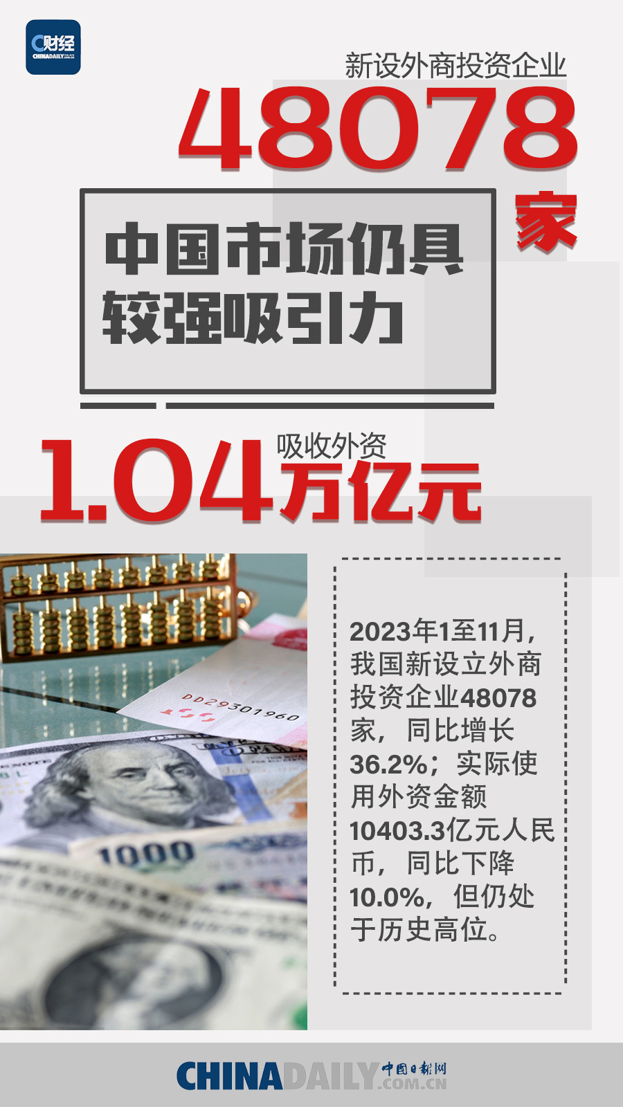 2023年,在世界經(jīng)濟(jì)復(fù)蘇乏力、全球貿(mào)易增長(zhǎng)持續(xù)低迷的情況下,中國(guó)外貿(mào)發(fā)展頂住壓力,促穩(wěn)提質(zhì),外貿(mào)新產(chǎn)品、新業(yè)態(tài)的潛力持續(xù)釋放。與此同時(shí),我國(guó)外資政策效應(yīng)逐步顯現(xiàn),吸引外資的結(jié)構(gòu)持續(xù)優(yōu)化,外資企業(yè)來(lái)華投資勢(shì)頭不減。