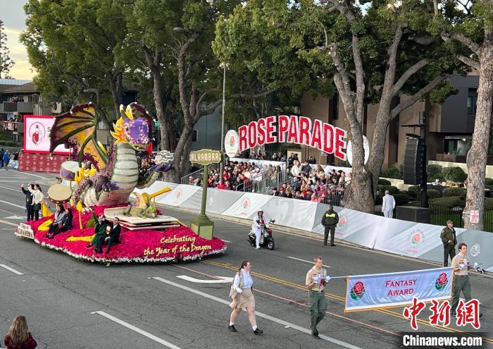 按照玫瑰花車游行的傳統(tǒng),花車由鮮花與枝葉等天然材料裝飾而成。2024年度“玫瑰皇后和玫瑰公主”花車、第110屆“玫瑰碗”橄欖球賽花車、關(guān)愛兒童和重視環(huán)保等主題花車各具匠心。值得一提的是,在中國傳統(tǒng)節(jié)日龍年春節(jié)即將到來之際,南加州華人聚居地阿罕布拉市帶來以“慶祝龍年”為主題的花車,用花朵融匯龍、音樂與愛等元素,憑借“奇幻與想象力方面的出色展現(xiàn)”榮獲花車設(shè)計(jì)“想象力獎”。