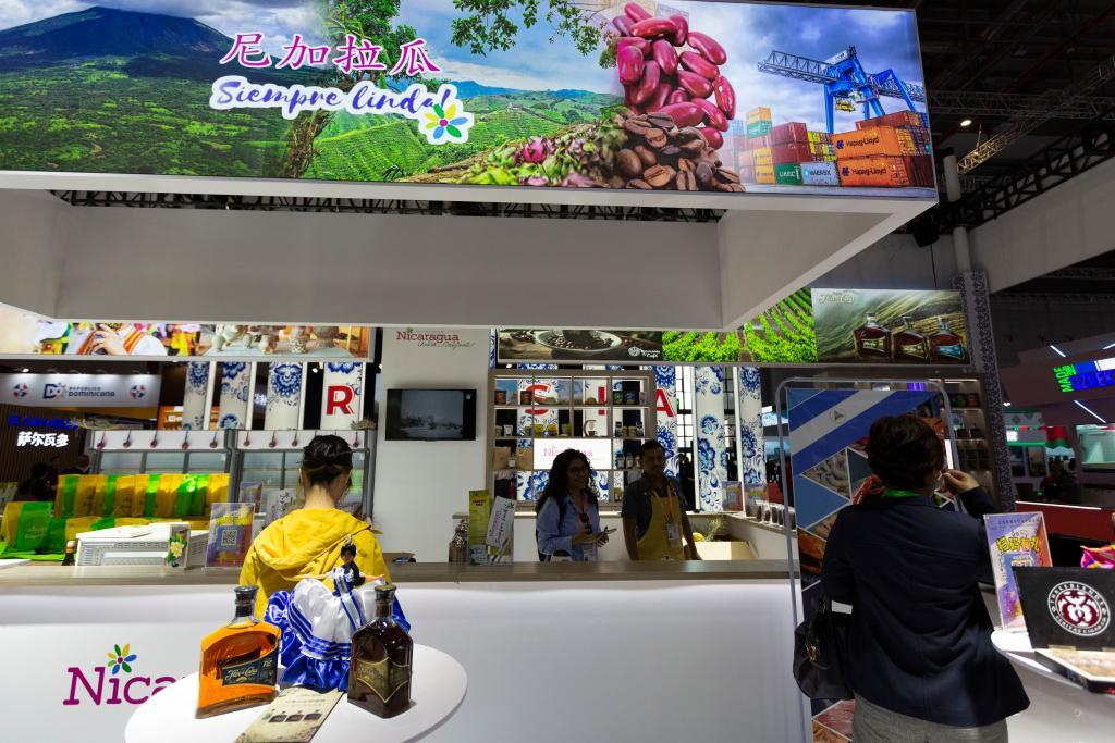這是2023年11月6日在第六屆進博會國家展拍攝的尼加拉瓜展臺。新華社記者高巍攝